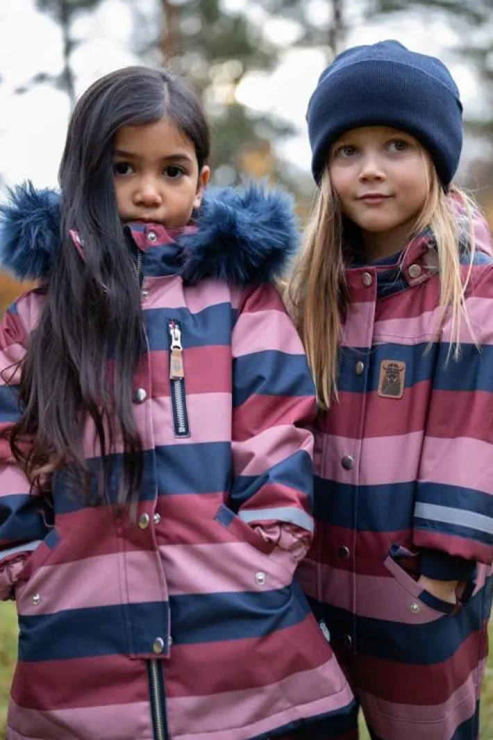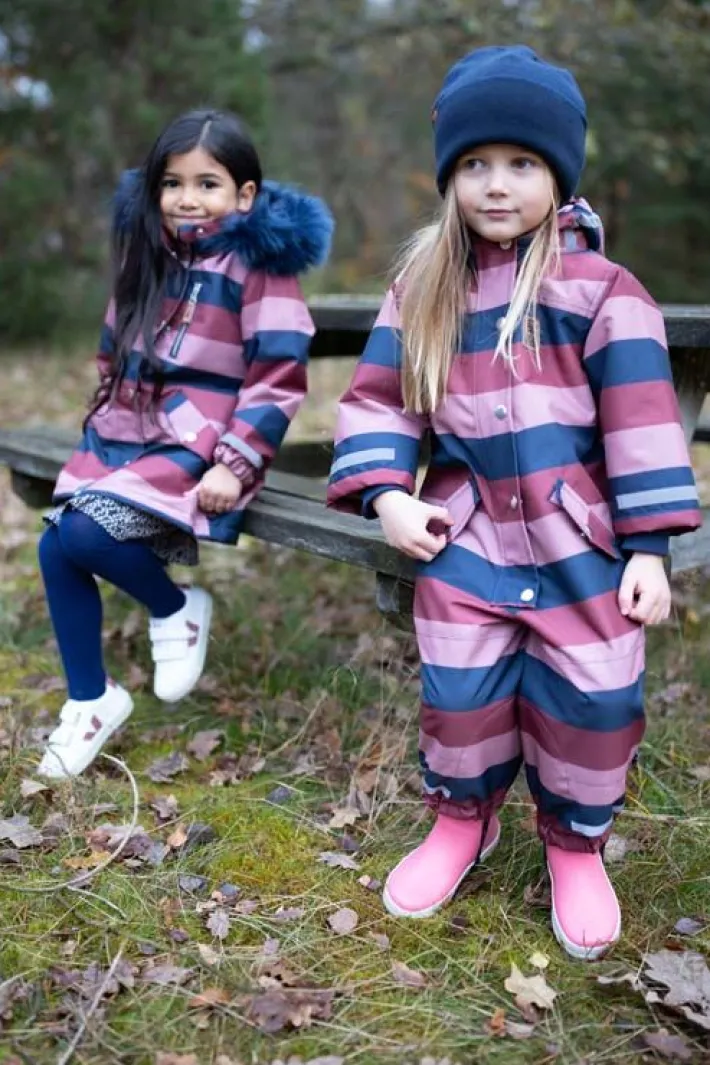 – Good fit that gives great mobility – Wind and waterproof material (5,000 mm waterproof) which is also breathable, as well as taped seams – Flour-free coating (Bionic Finish) Nice flight suit in beautiful stripes. The suit is made of durable material with warm Termolite lining. Nice shape and nice practical details, including windbreaks at the sleeves and large pockets for the mittens. Reflective tape on the sleeves and legs. The flight suit is lined with soft fleece throughout the upper body, in the lap and on the butt, as well as in the hood. The flight suit is wind and water resistant (5,000 mm). Very suitable for outdoor play as it keeps the child warm. Also on the ski trip. You are guaranteed to be seen on the playground with the beautiful colors! The flight suit is produced under BSCI-certified conditions. Flour-free coating (Bionic Finish). Danefæs children’s clothing contains no harmful substances.