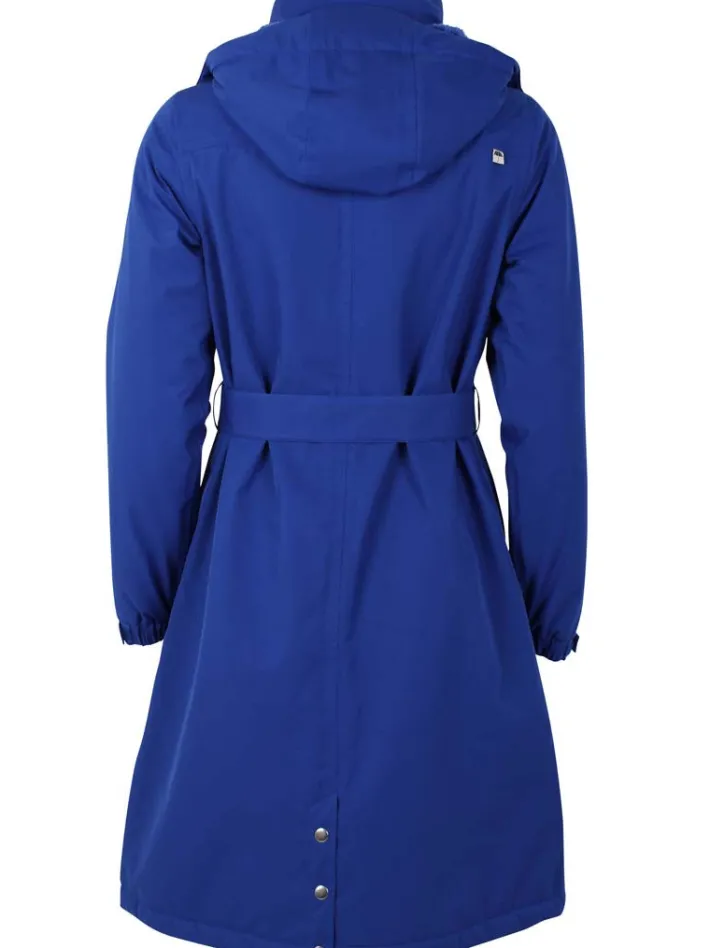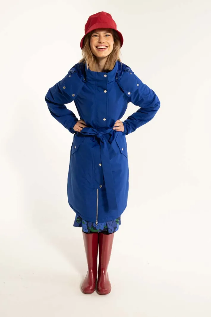 The winter raincoat has a classic cut with ties at the waist. The raincoat is perfect for the bike ride to work, the walk with the dog and the many hours on the playground.