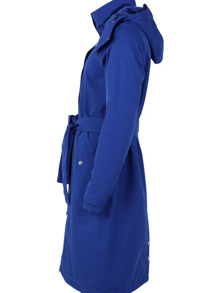 Inside, the raincoat has a fuzzy fleece lining, which makes the raincoat nice and warm. Note that the raincoat is nice and warm, but not as warm as our winter coats, as it does not have a thermal middle layer. The raincoat is thus intended for cold spring and autumn days, as well as winter days when it is not freezing cold. In colder winter weather, we recommend one of our waterproof winter coats.