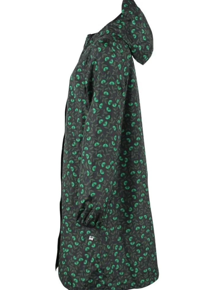 Edith regnfrakken har en enkel, lang og rummelig pasform, med god plads til arbejdstøjet eller den varme trøje indenunder. Regnfrakken har et vandsøjletryk på 8.000mm og har tapede sømme (over 3.000 mm betyder vandtæt, så frakken er meget vandtæt). Regnfrakken er åndbar og vindtæt.