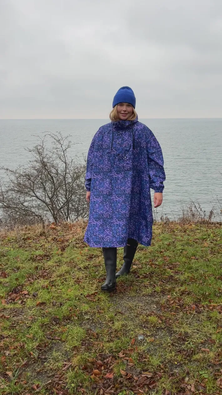 The most beautiful rain poncho with a high 8,000 mm water column pressure. The poncho is oversized in size, so there is room for any outfit underneath! It has slits in the sides for extra comfort and freedom to move around. Both the slits and post closure have matching press studs. The sleeves are finished with elastic, so that you don’t get wind in the sleeves when you are on your bike The hood can be laced up. Nice print. There is no excuse not to move outside and face the rain happily with this Dream Drops Rain Poncho!