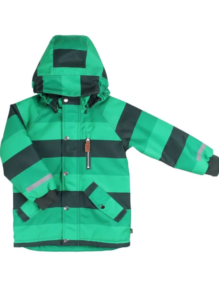 Meget fin pasform og mange detaljer, som blandt andet en aftagelig hætte for barnets sikkerhed. Bred rib ved ærmerne, så vinden holdes ude. Tre lommer heraf den ene på brystet. Fantastisk slidstærk kvalitet, så jakken holder til mange timers leg. Lækre striber og flot læderdetalje på lynlåsen og der er refleksbånd på ærmer og reflekser på ærmerne.
