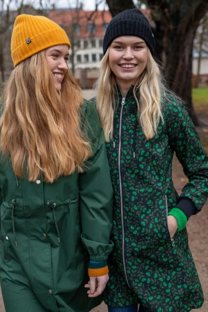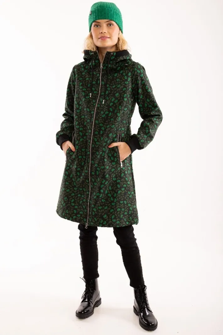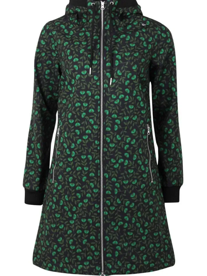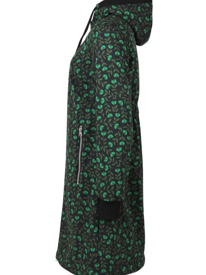 Jane softshellfrakke kombinerer alle softshellens tekniske egenskaber med et meget elegant og feminint look. Softshell er et lækkert og meget behageligt strækmateriale, der kombinerer vindtæthed, vandafvisning og varme i en 3-lags konstruktion bestående af: yderst: highcount polyester stretch yderskal med fluorfri vandafvisende behandling I midten: vind og vandafvisende åndbar mellem-membran inderst: blød og varm polar fleece på indersiden Softshellmaterialet har 8.000mm vandtæthed, som samtidig er vindtæt og åndbart. Frakken er coatet med en fluorfri coating og indeholder derfor ikke skadelige fluorcarboner. Softshellfrakken sidder elegant og feminint. Frakken har skrålommer, der lukkes med lynlås. Frakken har ribkant samt snøre ved hætten, således at hætten kan justeres for optimal pasform. Frakken har bred ribkant ved ærmerne, så vind og kulde holdes ude. Frakken har justerbar elastik nederst, således at den kan spændes tættere ind omkring benene, hvis ønsket. Frakken er inderst foret med en blød polarfleece, så den udover at være vindtæt også giver god varme til forår, efterår samt kølige sommeraftener. Frakken lukkes med en lynlås, som også kan lynes op nedefra, så man nemt kan cykle i frakken. Bemærk at frakkens sømme ikke kan tapes, på grund af den bløde fleece på indersiden. Det betyder, at der kan trække regn ind i sømmene i voldsomt regnvejr, så selvom frakken kan klare en masse regn, er det ikke en decideret regnfrakke.