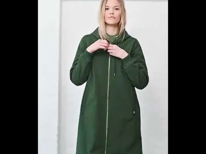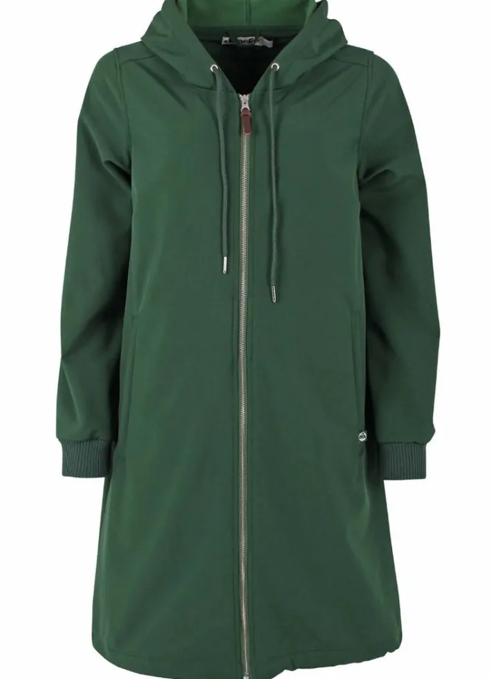 Softshellmaterialet har 8.000mm vandtæthed, som samtidig er vindtæt og åndbart. Frakken er coatet med en fluorfri coating og indeholder derfor ikke skadelige fluorcarboner. Softshellfrakken sidder elegant og feminint. Frakken har ribkant samt snøre ved hætten, således at hætten kan justeres for optimal pasform. Frakken har bred ribkant ved ærmerne, så vind og kulde holdes ude. Frakken har justerbar elastik nederst, således at den kan spændes tættere ind omkring benene, hvis ønsket.