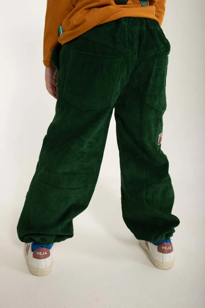 Katholt Cord Pants er vores super lækre, oversized fløjlsbukser. Bukserne har et bredt, justerbart elastikbånd i livet, der får bukserne til at sidde rart på alle børn. Der er store, flotte lapper på knæene, der bidrager til buksernes seje udtryk. Den tykke fløjl føles dejlig at have på, og samtidig er den slidstærk, så der er god plads til leg.