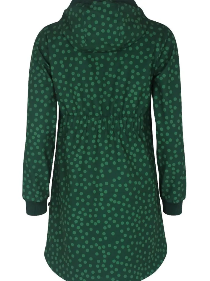 Laura softshellfrakke kombinerer alle softshellens tekniske egenskaber med et meget elegant og feminint look. Softshell er et lækkert og meget behageligt strækmateriale, der kombinerer vindtæthed, vandafvisning og varme i en 3-lags konstruktion bestående af: yderst: highcount polyester stretch yderskal med fluorfri vandafvisende behandling I midten: vind og vandafvisende åndbar mellem-membran inderst: blød og varm polar fleece på indersiden Softshellmaterialet har 3.000mm vandtæthed, som samtidig er vindtæt og åndbart. Frakken er coatet med en fluorfri coating og indeholder derfor ikke skadelige fluorcarboner. Softshellfrakken har elastik i ryggen samt er lettere rundet nederst bagpå for en feminin pasform. Frakken har 2 store rummelige lommer foran. Frakken har ribkant ved hætten samt snøre, således at hætten kan justeres for optimal pasform. Frakken har bred elastik ved ærmerne, så vind og kulde holdes ude. Frakken er inderst foret med en blød polarfleece, så den udover at være vindtæt også giver god varme til forår, efterår samt kølige sommeraftener. Frakken lukkes med en lynlås. Bemærk at frakkens sømme ikke kan tapes, på grund af den bløde fleece på indersiden. Det betyder, at der kan trække regn ind i sømmene i voldsomt regnvejr, så selvom frakken kan klare en masse regn, er det ikke en decideret regnfrakke. Softshelljakken kan vaskes i maskine ved 30 grader. Generelt anbefales det, at man vasker overtøj mindst muligt. FRAKKENS LÆNGDE: Målt fra skulder og ned, foran på frakken. XS 88 cm, S 90 cm, M 92 cm, L 94 cm, XL 96 cm, XXL 97 cm, XXXL 97 cm.