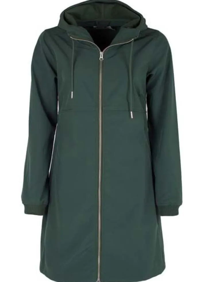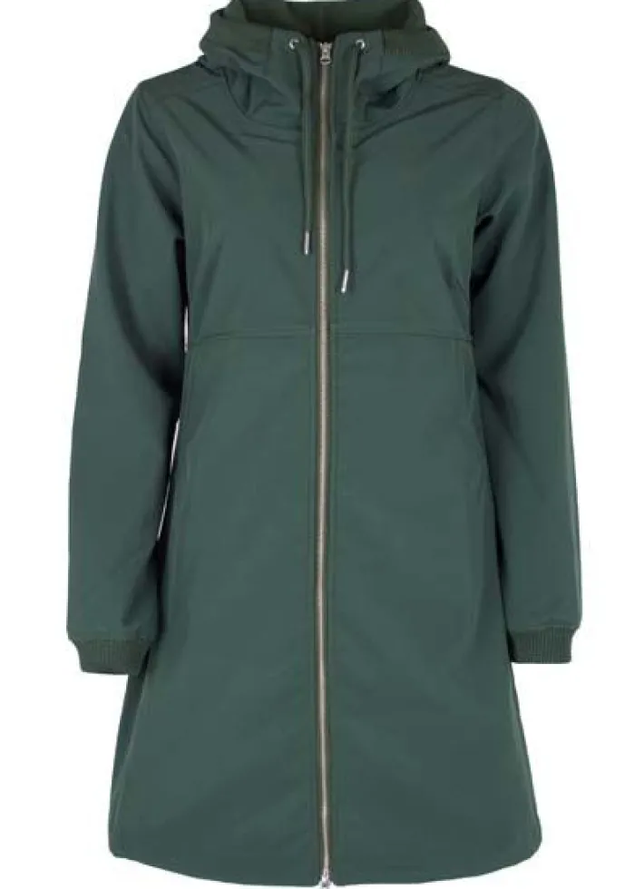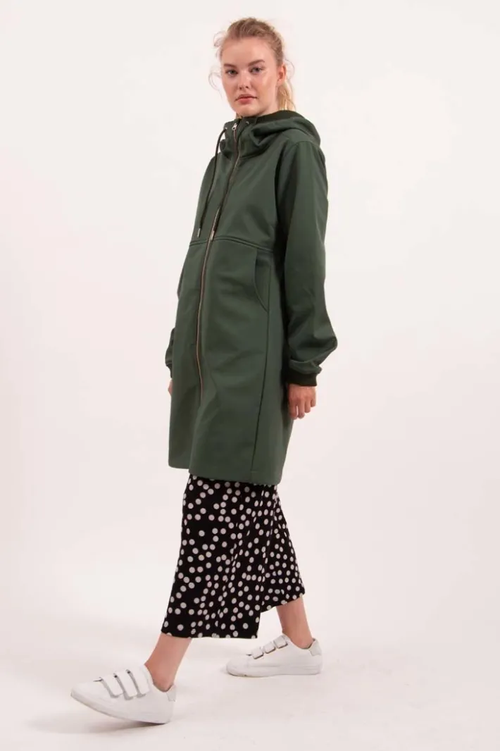 Line softshell coat combines all the softshell’s technical properties with a very elegant and feminine look. Softshell is a delicious and very comfortable stretch material that combines windproofness, water repellency and warmth in a 3-layer construction consisting of: outer: high-count polyester stretch outer shell with fluorine-free water-repellent treatment In the middle: wind and water-repellent breathable mid-membrane inside: soft and warm polar fleece on the inside The softshell material has 8,000mm water resistance, which is also windproof and breathable. The coat is coated with a fluorine-free coating and therefore does not contain harmful fluorocarbons. The softshell coat sits elegantly and femininely. The coat has slanted pockets. The coat has ribbed edges and a drawstring at the hood, so that the hood can be adjusted for an optimal fit. The coat has wide ribbing at the sleeves, so that wind and cold are kept out. The coat has adjustable elastic at the bottom, so that it can be tightened more tightly around the legs, if desired. The inside of the coat is lined with a soft polar fleece, so that in addition to being windproof, it also provides good warmth for spring, autumn and cool summer evenings. The coat closes with a zip, which can also be zipped up from below, so you can easily cycle in the coat. Please note that the seams of the coat cannot be taped due to the soft fleece on the inside. This means that rain can get into the seams in heavy rain, so even though the coat can handle a lot of rain, it is not a definite raincoat. The softshell jacket can be machine washed at 30 degrees. In general, it is recommended that you wash outerwear as little as possible. COAT LENGTH: Measured from shoulder down, front of coat. XS 90 cm, S 92 cm, M 94 cm, L 94 cm, XL 98 cm, XXL 99 cm, XXXL 99 cm.