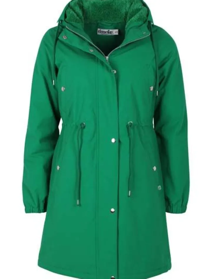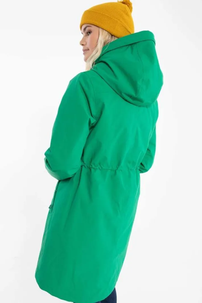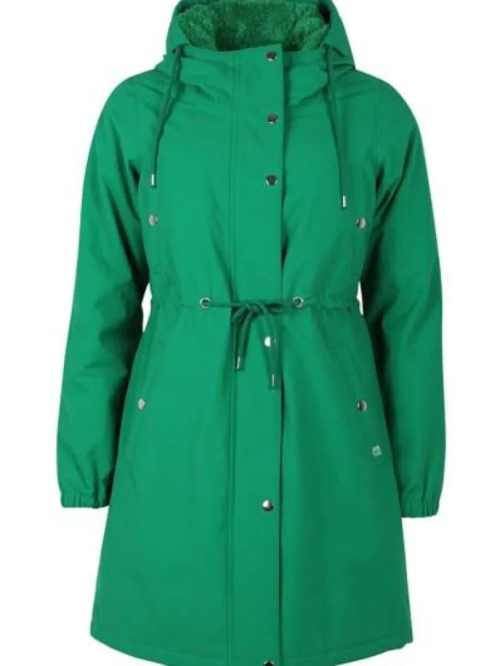 Indvendigt har frakken et varmt og blødt fuzzy fleece foer, som gør frakken ekstra varm og skøn for frossenpinde. Vinterfrakken har en dobbeltlynende lynlås, så du kan lyne frakken op nedefra og cykle i den. Lynlåsen er dækket af et frontpanel med trykknapper. Frakken har elastik ved håndleddene, så vinden holdes ude. Frakken har snøre i livet, så frakken kan spændes ind efter ønske. Vinterfrakken har 4 skrålommer, 2 ved brystet og 2 ved hofterne. Frakkens hætte kan snøres ind, så den sidder tæt til hovedet. Vinterfrakken er lavet i en slidstærk og teknisk bomuld/nylon ripstop. Ripstop vævningen bruges blandt andet også til faldskærme, da den ikke kan rives i stykker. Vinterfrakken er coatet med fluorfri coating (Bionic Finish).