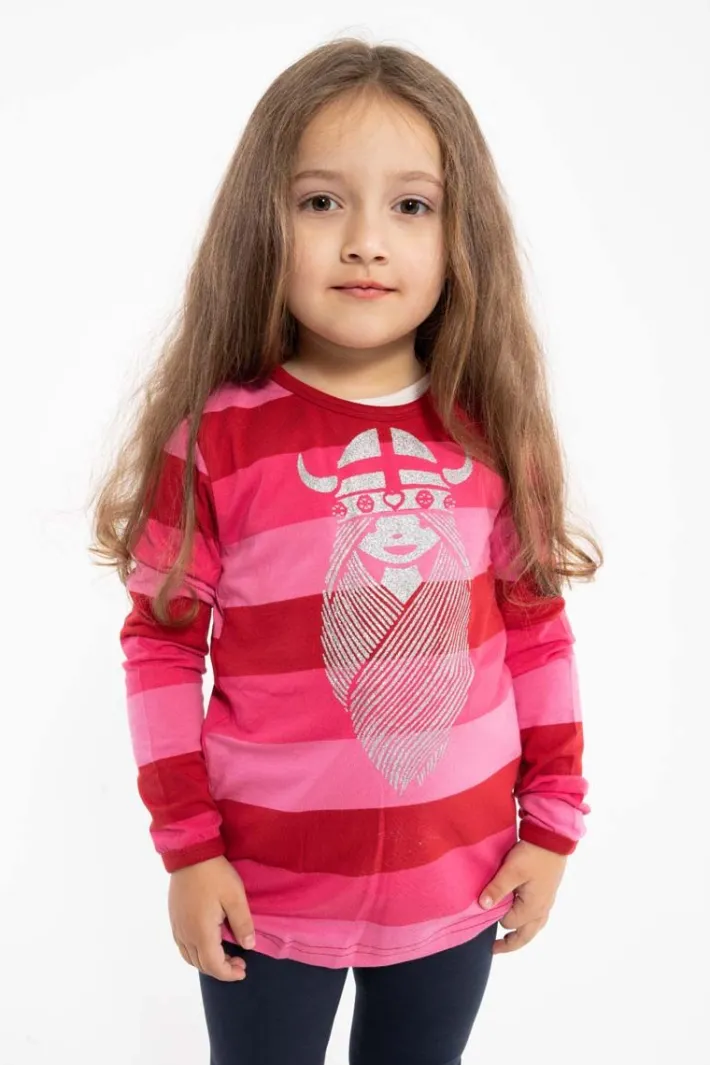 Super soft long-sleeved blouse with the popular Danefæ Viking Freja, in a beautiful cotton quality (180 g, 95% cotton/5% elastane). Get your imagination going with fun prints and inspire fun play! Children’s clothing from Danefæ is of high quality and made to be passed down, so the blouse can be washed again and again and still look great. The fit is soft and comfortable and provides plenty of room for play and movement. At the same time, the blouse is easy to take on and off. The blouse is Oeko-tex certified according to Oeko-tex standard 100, which is your assurance that the blouse does not contain harmful chemicals of any kind. Our prints also comply with the REACH standard for no use of harmful chemicals. All our manufacturers are BSCI certified, which is our and your assurance that the blouse is produced under decent working conditions. At Danefæ, we have drawn up our own set of rules for quality and durability with requirements for color fastness and wear. We regularly inspect and test the products and production. Our goal is that clothes from Danefæ can last child after child and not just be used and thrown away. The blouse can be machine washed at 40 degrees.