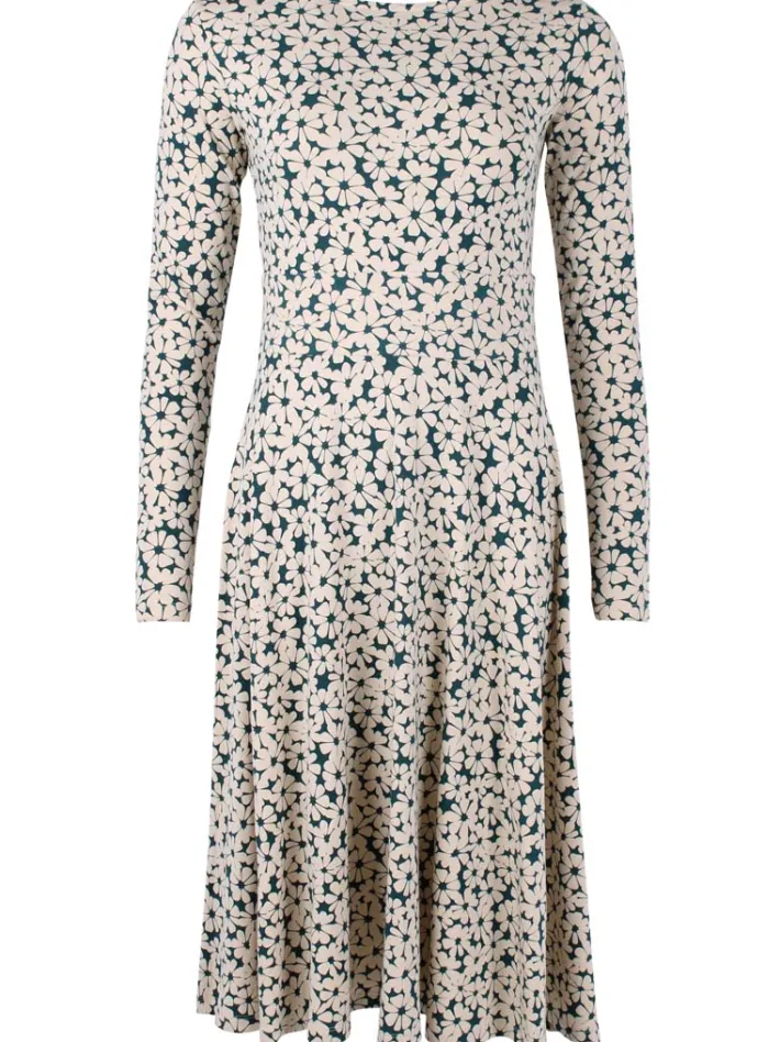 Snittet sidder flot på alle kropstyper. Den brede halsudskæring fremhæver kravebenene samtidig med, at det brede taljestykke fremhæver figuren, hvilket givet et super flot og feminint look, der passer godt til de fleste kropstyper. Det „under-knælange“ skørt falder elegant. Kombinationen af den smukke model, det lækre materiale og de flotte mønstre og farver gør Sigrid Dress til en must-have kjole i garderoben.