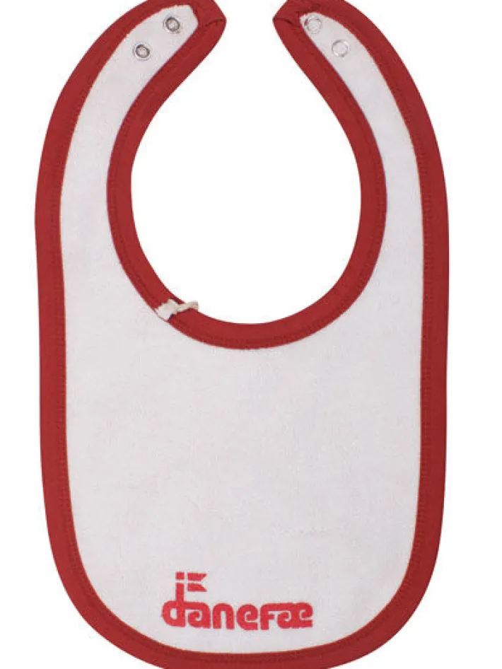 Blød og lækker hagesmæk til familiens yngste. Hagesmækken er lavet af 95% bomuld og 5% elastan og den har ribkant hele vejen rundt, så den er behagelig at have på. Halsåbningen har trykknapper, der kan indstilles i to forskellige størrelser. Flotte klassiske Danefæ-striber med print af SWAN foran.