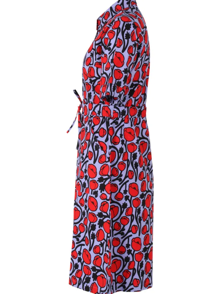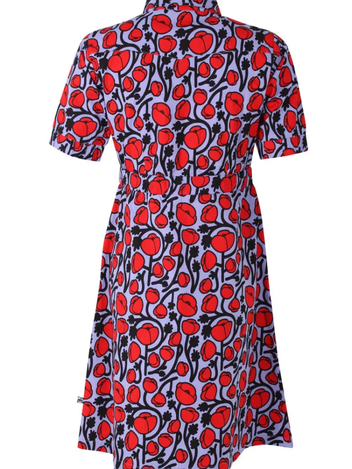 Kjolen er lavet i bomuldspoplin med stræk, og består af 95% bomuld og 5% elastan. Kjolen er lavet i Oeko-tex certificerede materialer.