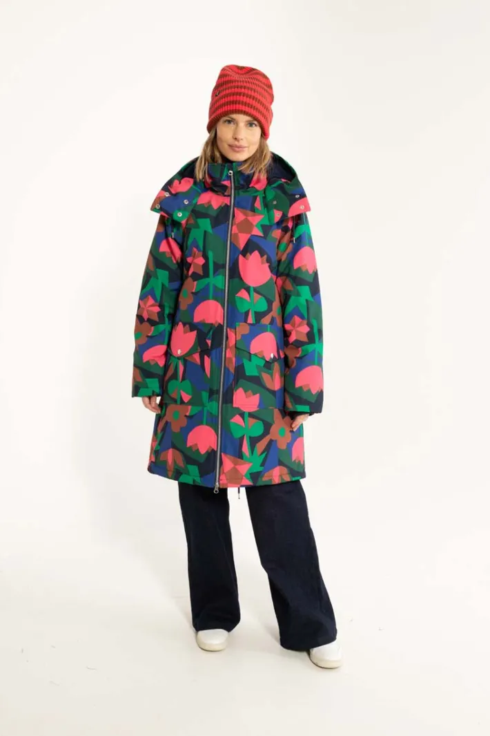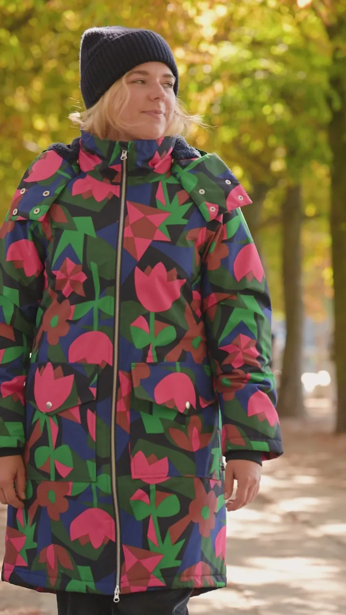 Daneturell Winter Parka kombinerer tekniske egenskaber og elegant design på smukkeste vis. Derudover er der tænkt over alle de praktiske detaljer, der gør frakken super anvendelig i hverdagen. Frakken er også åndbar, hvilket er praktisk på en frisk gå- eller cykeltur. Frakken har en ekstra høj halskrave der kan lynes helt op. Der er en blød og bred ribelastik ved håndleddene, som hjælper med at holde kold vind ude. Lynlåsen kan lynes både oppe- og nedefra, hvilket gør jakken ideel til for eksempel en cykeltur. Den aftagelige hætte er foret med blød fleece, har dobbelt trykknapslukning, og kan derudover snøres ind så der kan lukkes helt tæt omkring ansigtet. Der er en skjult snøre i livet indvendigt så frakken kan spændes ind og taljeres efter ønske. Forrest på frakken sidder to rummelige og praktiske lommer med trykknapslukning. På bagsiden er jakken afsluttet med en lille slids med snører, der sikrer ekstra bevægelighed, når lynlåsen er lukket helt til bunden.