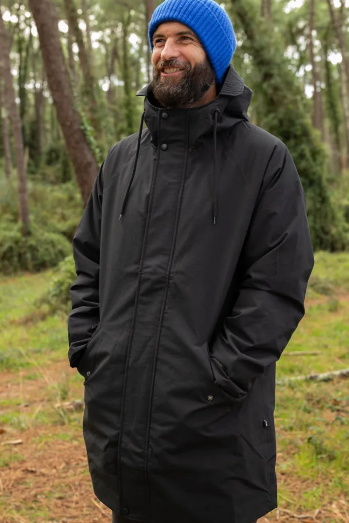 The winter coat is lined with a compact thermofoyer, which is very warm, but at the same time compact, so that the coat does not take up too much space, and at the same time there is good movement in the coat. Inside, the coat has a warm and soft fuzzy fleece lining, which makes the coat extra warm. The zipper is covered by a front panel with press studs.