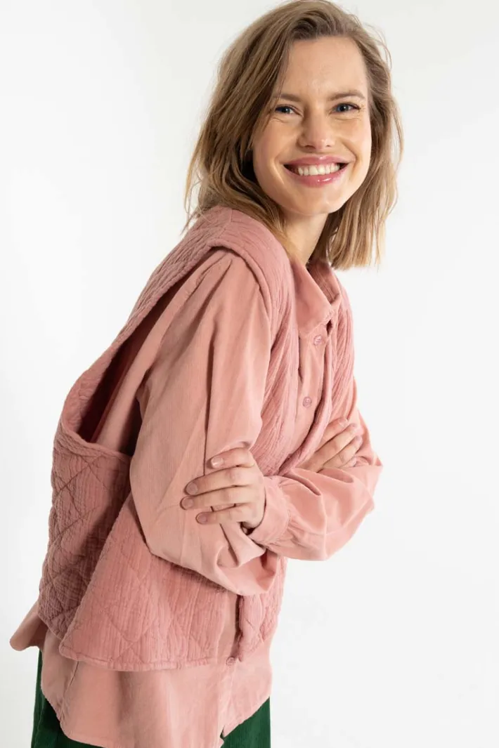 A beautiful and useful quilted vest in a nice colour. The vest is garment dyed, which gives a beautiful vintage look. Use it for everyday and parties or as an extra layer on a chilly day. The vest is perfect over a shirt and a pair of jeans or over a long-sleeved dress. The vest is made of 100% cotton and quilted on a polyester padding. The vest is normal in size.