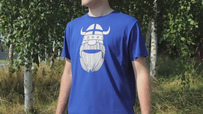 The T-shirt has the most beautiful Viking print with Danefæs‘ popular Viking.