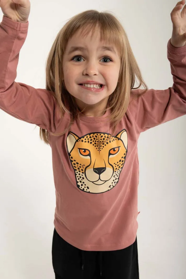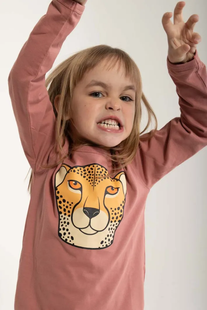 Skøn bluse fra DYR med en fin Gepard, som sætter gang i fantasien og giver plads til masser af sjov leg. Lavet i bløde materialer, så blusen er dejlig at have på. Materialet består af 95% bomuld (180 gram) og 5 % elastan.
