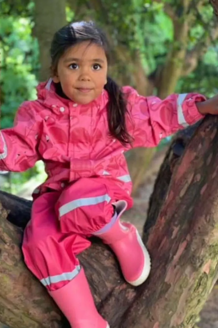 Et høj kvalitets regnsæt, når kun det bedste er godt nok. Danefæs populære og funktionelle regntøj i en super lækker kvalitet. Regnsættet er lavet i et særdeles vind- og vandtæt materiale (3.000 mm vandtæthed) og har tapede sømme, så det kan modstå det danske vejr. Slidstærkt så sættet kan holde til mange timers vild leg. Regnjakken har aftagelig hætte for barnets sikkerhed og dobbeltlynende lynlås, som ligeledes er vandtæt. Regnbukserne har seler til og med 4 år, derefter er det almindelige regnbukser med elastik i taljen.