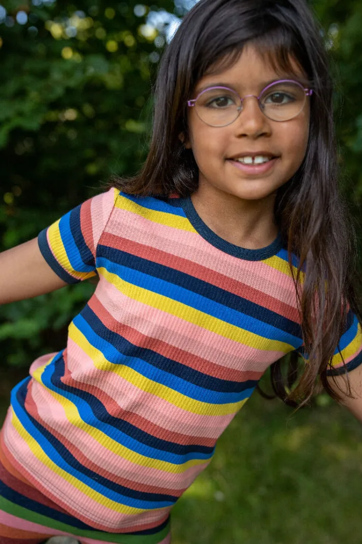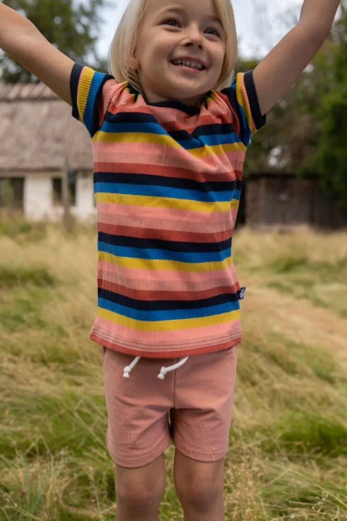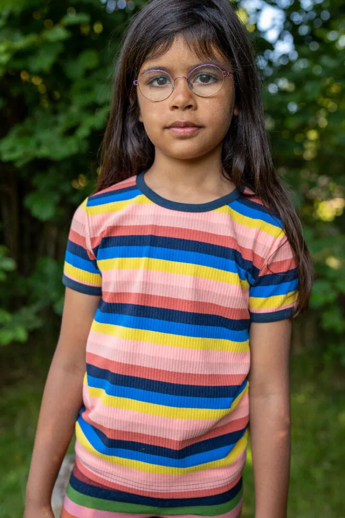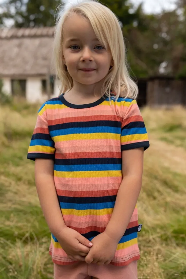 Super fin og klassisk t-shirt til de små. T-shirten er i et lækkert bomulds/modal rib-materiale, som føles skønt mod huden (50% bomuld, 45% modal og 5% elastane). Kvaliteten af materialet er dejlig blødt og luftigt, og har en god strækbarhed for ekstra komfort. Et must til basis-garderoben!