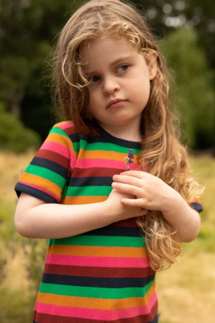 Super fin og klassisk t-shirt til de små. T-shirten er i et lækkert bomulds/modal rib-materiale, som føles skønt mod huden (50% bomuld, 45% modal og 5% elastane). Kvaliteten af materialet er dejlig blødt og luftigt, og har en god strækbarhed for ekstra komfort. Et must til basis-garderoben!