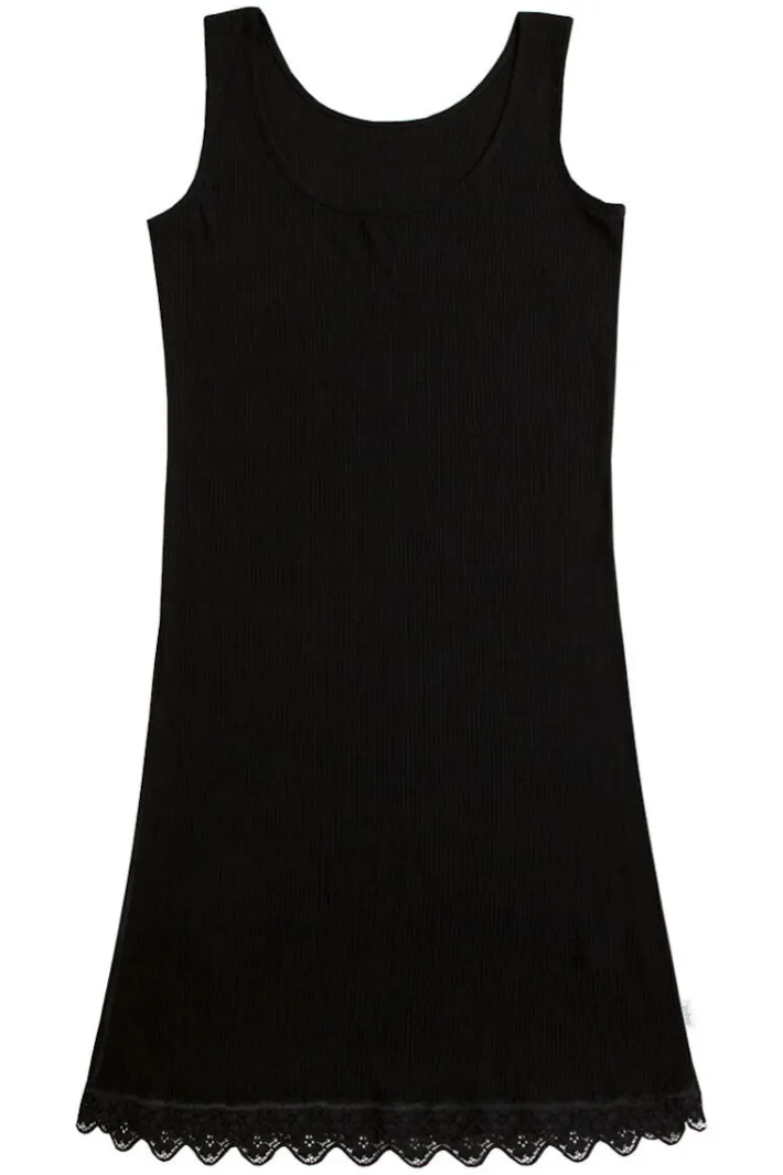 Really beautiful and classic dress from Danish JOHA. The dress is in a delicious and soft quality, and feels super nice to wear. It has lace at the bottom as a nice detail. The dress is made of 70% wool and 30% silk.