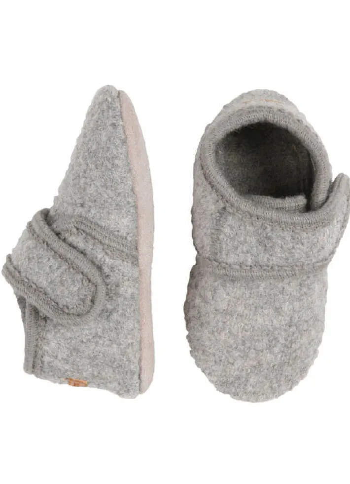 Hjemmeskoene har en skridsikker sål i ruskind, så barnet står godt.