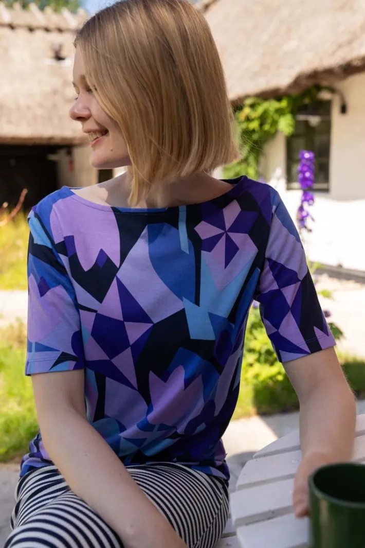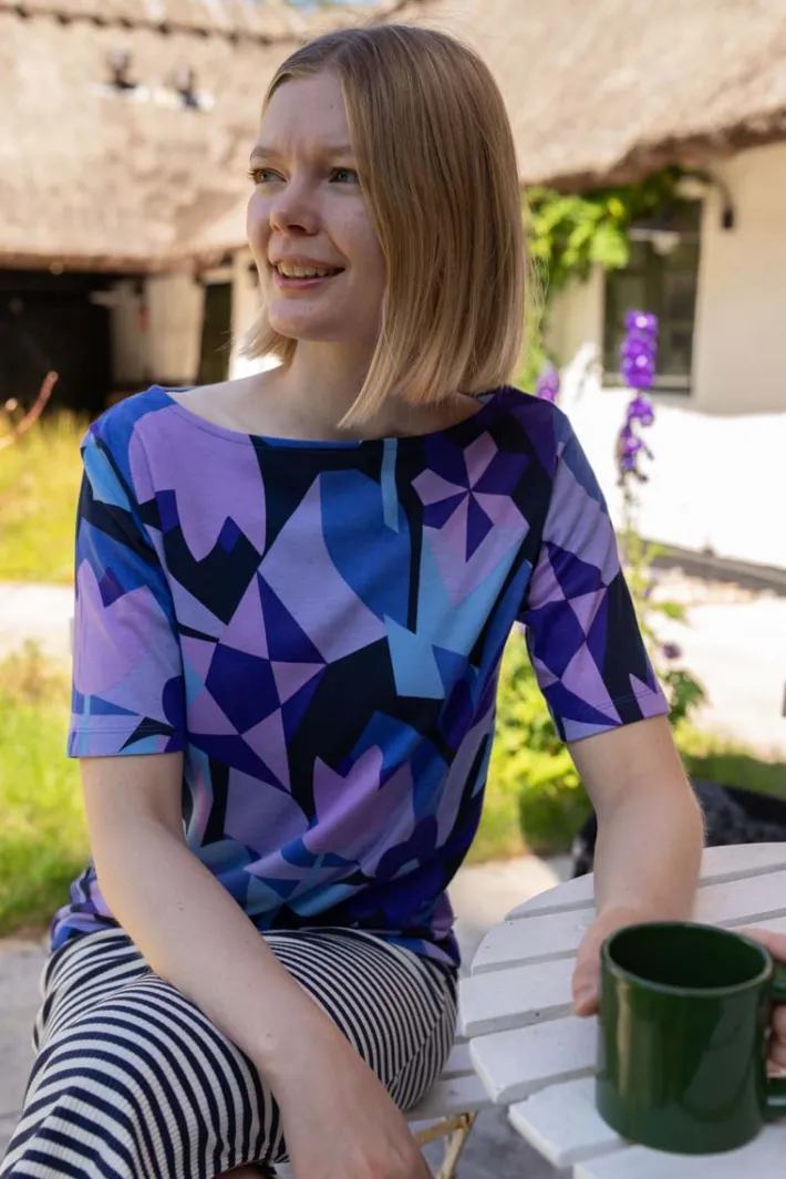 T-shirten har et fint klassisk t-shirt snit, en fin længde ærmer og en smuk bådudskæring.