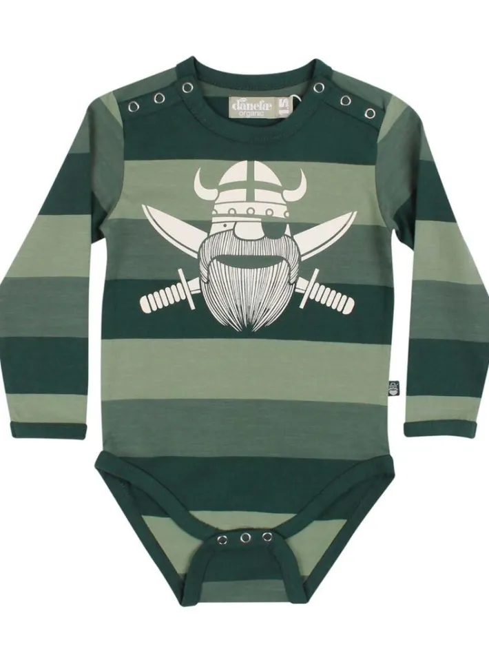 Danehavtorn Body er en dejlig, langærmet bodystocking af det blødeste økologiske bomuld. Bodystockingen har flotte farver og et stort, sødt print på maven. Der er trykknapper ved begge skuldre og benene, så det er nemt at få dragten af og på barnet. Bodystockingen er lavet med plads til bleen, leg og bevægelse.