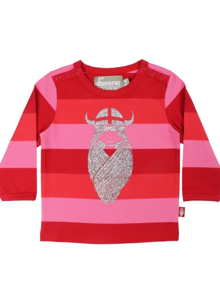 Parsley LS er en langærmet bluse med de flotteste farver. Blusen er lavet af en super lækker, økologisk bomuldsblanding, der føles skøn at have på. Trykknapperne på begge skuldre, gør det nemt at få blusen på og af barnet. Det store print på maven er en sikker favorit. Parsley LS er lavet af det super bløde materiale Organic 210 gr. Brush CL, der består af 95 % økologisk bomuld og 5 % elastan. Elastanen gør materialet strækbart og dermed endnu dejligere at have på. Børnetøj fra Danefæ er tøj, som børn forstår. De sjove prints og flotte farver taler til børnene. Alt vores tøj er produceret ud fra tre kerneværdier: kvalitet, omtanke og ansvarlighed. Kvalitet betyder, at der skal være plads til leg og bevægelse, samt at farve, form og tryk kan holde vask efter vask efter vask. Omtanke betyder, at vi har meget klare standarder for brugen af kemikalier samt for de sikkerhedskrav vores produkter skal leve op til. Alle vores produkter er fri for fluorstoffer og andre skadelige kemikalier. Ansvarlighed betyder at alle vores ting bliver produceret under forhold, vi kan stå inde for. Vi producerer kun hos BSCI- certificerede producenter, som vi besøger årligt.