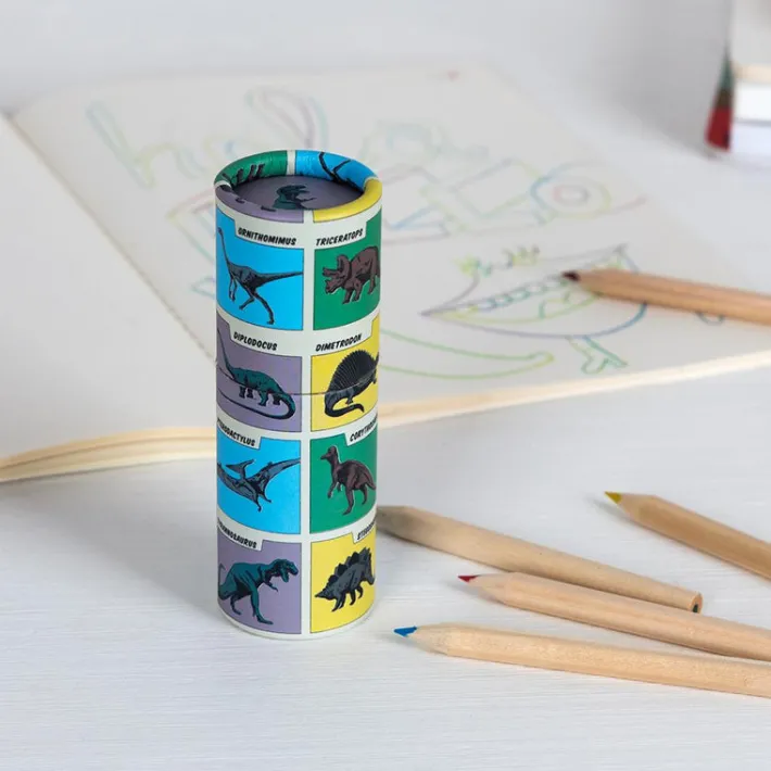 Keep all your little coloring pencils together in this handy Prehistoric Land tube, ideal for storing in your bag. This set also makes a great filler for stockings and party bags.