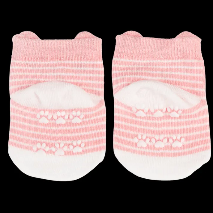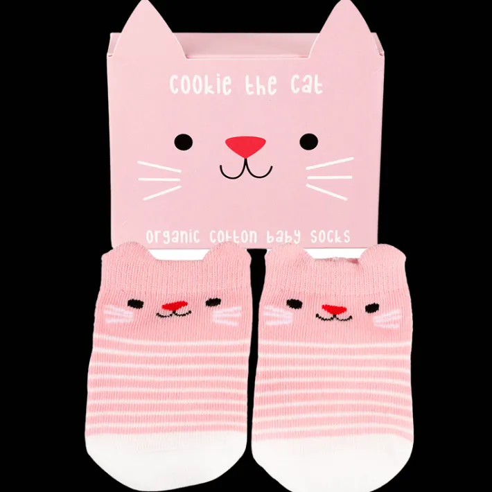 An adorable pair of pink cat-themed socks for your baby’s cute toes. Made out of organic cotton, these will keep little feet comfy and warm while still looking adorable! A sweet gift for a newborn’s christening or birthday.