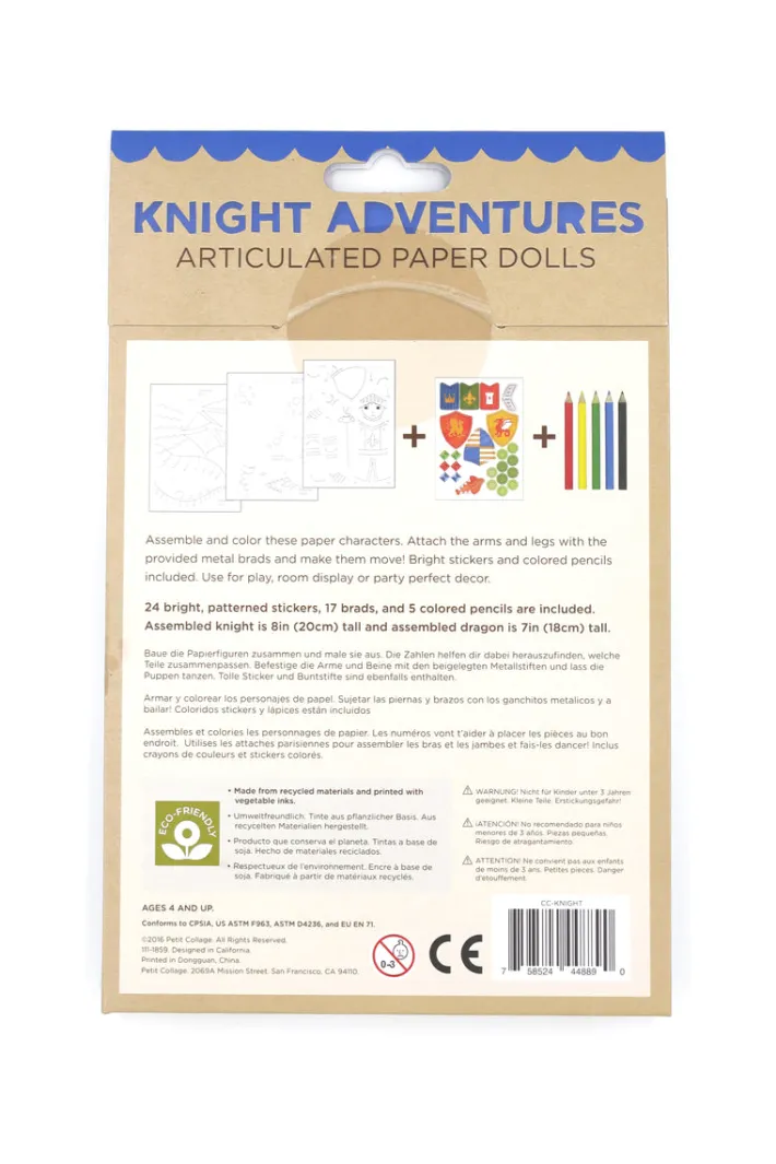 Hvert dukkesæt indeholder to karakterer, et ark med klistermærker, papirbindere i metal og fem farveblyanter. De samlede dukker er cirka 20 cm høje. De er lavet ud af genbrugspapir og er trykt med vegetabilsk blæk.