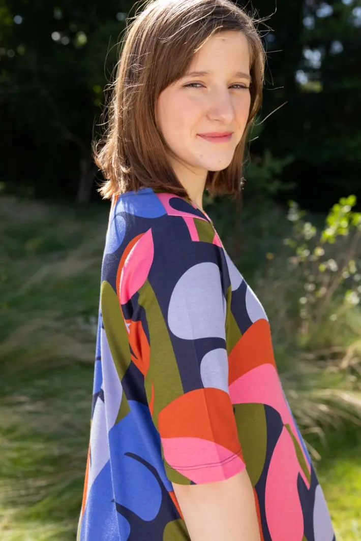 DanAlberte dress har det flotteste snit, der klæder de fleste kropstyper. Kjolen sidder løst og falder smukt.