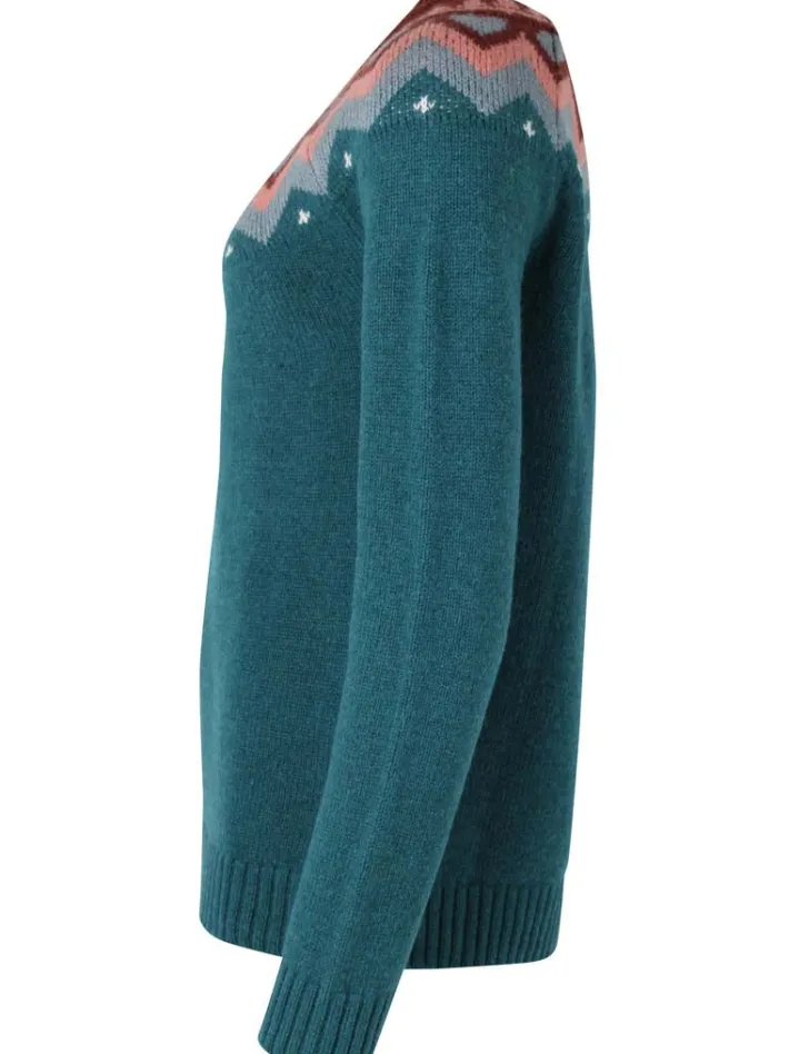 Den skønne varme Dananne Sweater er perfekt til kølige skandinaviske dage. Sweateren er prydet med et smukt nordisk mønster og lavet af de blødeste materialer. Sweateren har varmen fra ulden, blødhed fra viscosen og åndbarhed fra bomulden. En super varm og skøn sweater til hver dag hele efterår, vinter og forår. Sweateren er lavet af mulesing fri uld. Sweateren skal håndvaskes med uld-vaskemiddel og lægges til tørre fladt på et håndklæde.