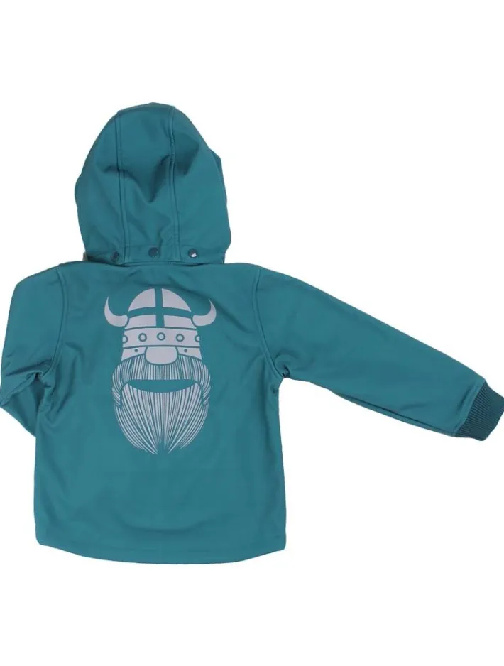 Softshellmaterialet har 8.000 mm vandtæthed og er samtidig vindtæt og åndbart. Jakken er coatet med en fluorfri coating og indeholder derfor ikke skadelige fluorcarboner. Bemærk at grundet den bløde fleece på indersiden, kan man ikke tape sømmene, så jakken er ikke 100% vandtæt, da der ved tung regn kan trænge vand ind i sømmene. Jakken har aftagelig hætte for barnets sikkerhed. Jakken har bred rib ved håndleddene, så vinden holdes ude. Jakken har to lynlåslommer foran og en stor refleks bagpå.