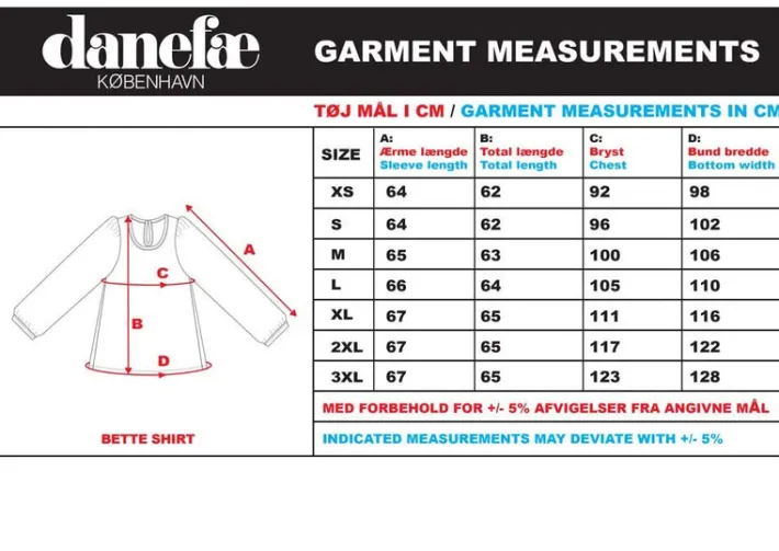 Den perfekte skjortebluse – til hverdag og fest – i flot bomuld og med fine, lette pufærmer. Modellen er ikke tætsiddende og således dejlig nem at anvende f.eks. til jeans eller vores mange denim-, slå-om- eller fløjlsnederdele. Ansvarlig produktion er en selvfølgelighed. Vi arbejder kun med BSCI certificerede producenter. Samtidig besøger vi vores producenter hvert år, så vi er sikre på, at vi kan stå inde for arbejdsforholdene. Danefæ produkter følger, ud over gældende europæisk og dansk lovgivning, et helt specielt Danefæ regelsæt for brug af kemi, sikring af holdbarhed og garanti for skønhed vask efter vask.