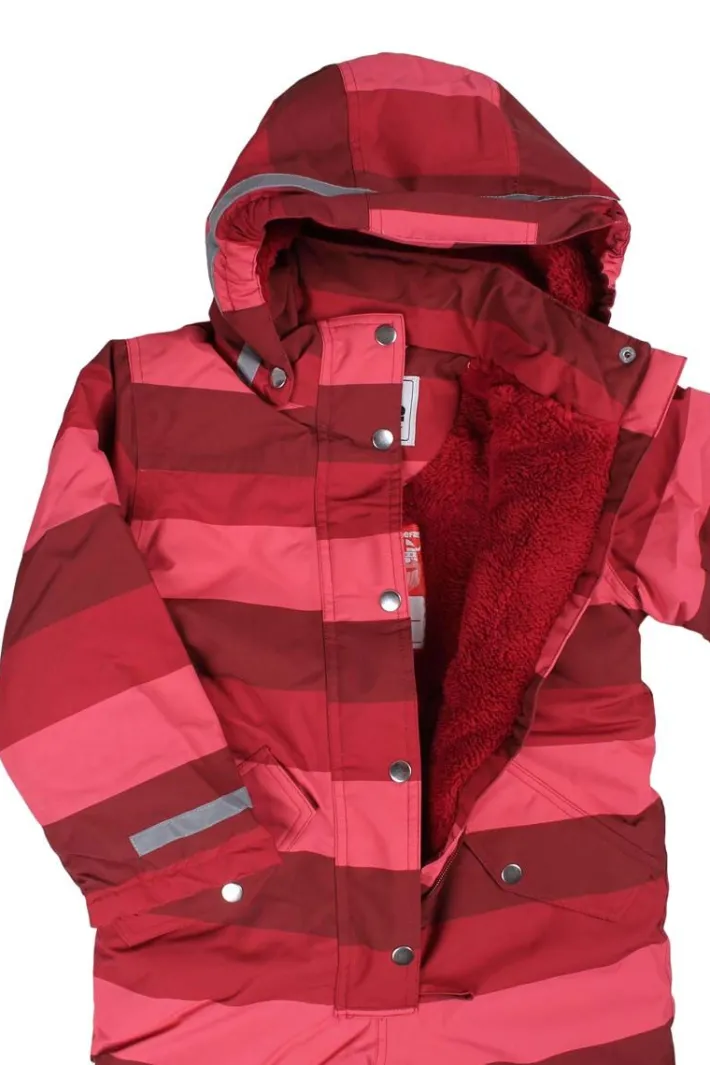 Lækker flyverdragt i skøn farve. Dragten er lavet i slidstærkt materiale med varmt Termolite for. Flot facon og fine praktiske detaljer, blandt andet vindfang ved ærmerne og store lommer til lufferne. Refleksbånd ved ærmerne og benene. Flyverdragten er foret med blød fleece i hele overkroppen, i skødet og på numsen samt i hætten. Flyverdragten er vind- og vandafvtæt (5.000 mm). Meget velegnet til udendørsleg, da den holder barnet varmt. Også på skituren. Der er garanti for at blive set på legepladsen med de skønne farver! Flyverdragten er produceret under BSCI-certificerede forhold. Flourfri coating (Bionic Finish). Danefæs børnetøj indeholder ingen skadelige stoffer.