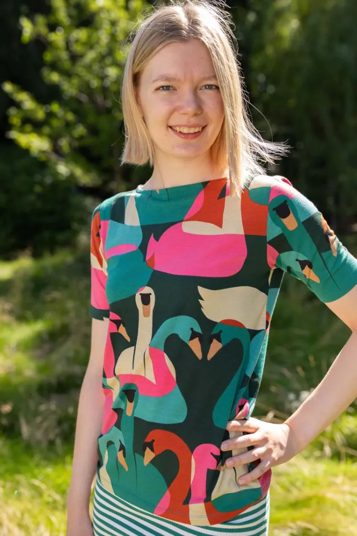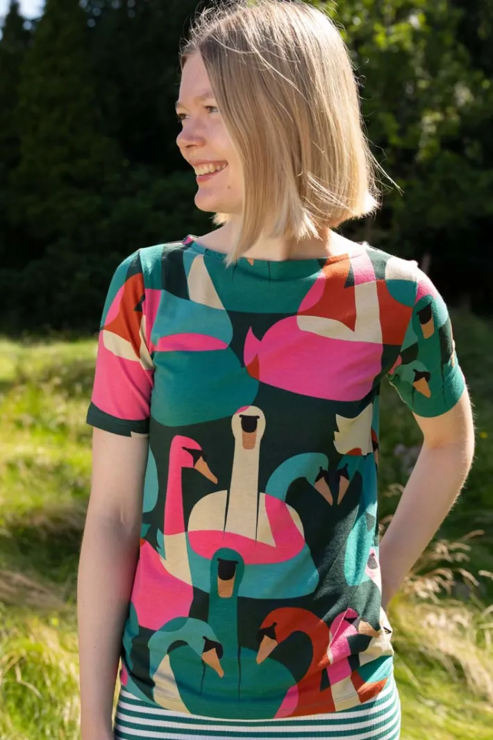 Beautiful and delicious t-shirt in a really nice fit and with a dressy boat neck.