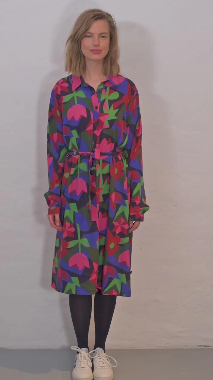 Daneheritage Viscose Dress er en flot knælang skjortekjole med lange ærmer og et flot, farverigt blomster mønster. Kjolen er lavet i en skøn og komfortabel viskose kvalitet.