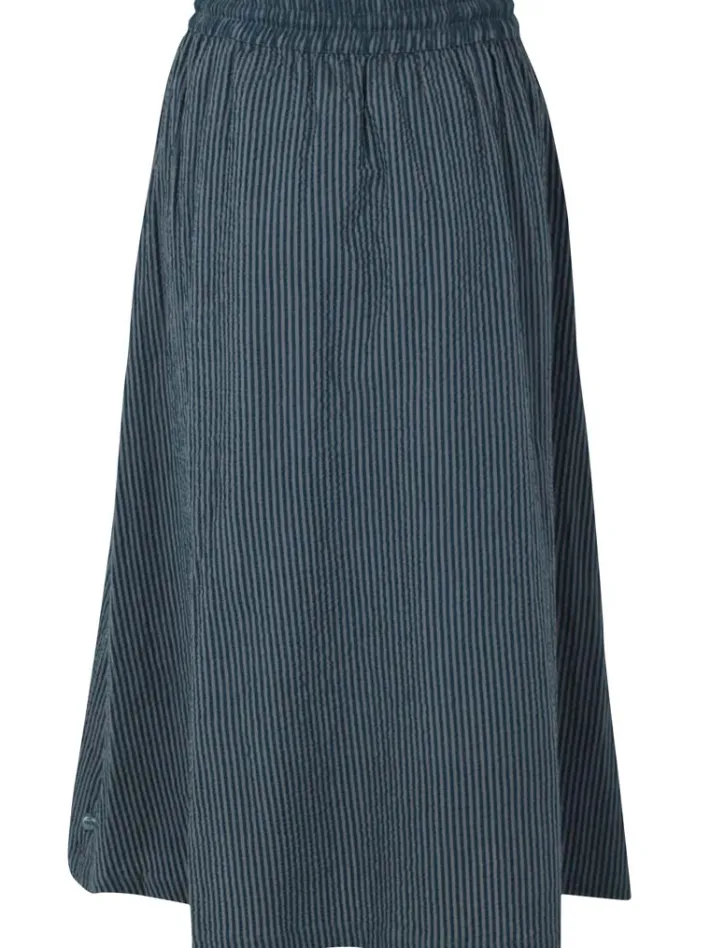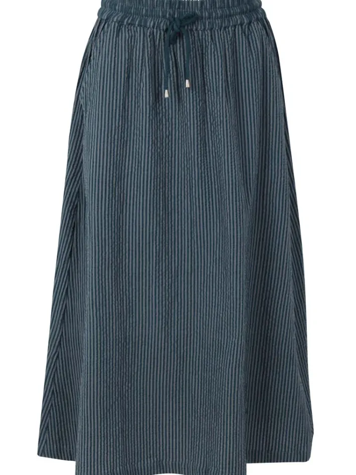 Sweet and feminine skirt in the most delicious seersucker material in a beautiful colour. The skirt has pockets on each side and a fine tie at the waist which can be tightened as needed. The skirt has a good fit and falls beautifully on the body. Combine the skirt with a comfortable sweater for a nice everyday outfit or with a nice shirt for an elegant party outfit.