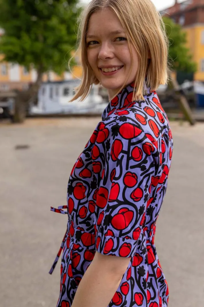 Kjolen er lavet i bomuldspoplin med stræk, og består af 95% bomuld og 5% elastan. Kjolen er lavet i Oeko-tex certificerede materialer.