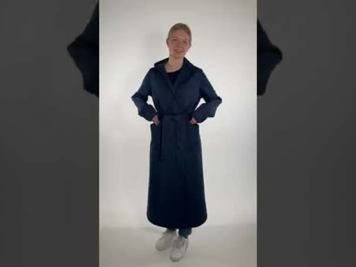 Det skønne strækbare termomateriale fra vores Maude termofrakke, kombineret med en blød fleece på indersiden, samt en vindtæt membran, holder dig varm, selv på rigtig kolde dage. Badekåben har et bindebælte, der kan håndteres af selv de mest frosne eller trætte hænder. Ærmet har et ekstra ombuk, der nedfoldet i sin fulde længde, med sit varme fleece-for, holder dine hænder lune til fingerspidserne. Dejlig lun hætte med blød fleece, der sidder godt til hovedet. Store gode lommer med plads til telefon og andre nødvendigheder. Tag et dyp i havet og få varmen igen i morgenkåben.