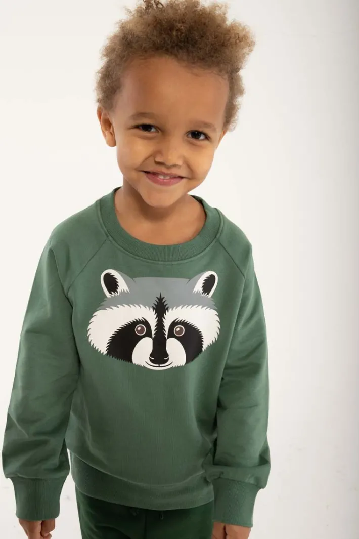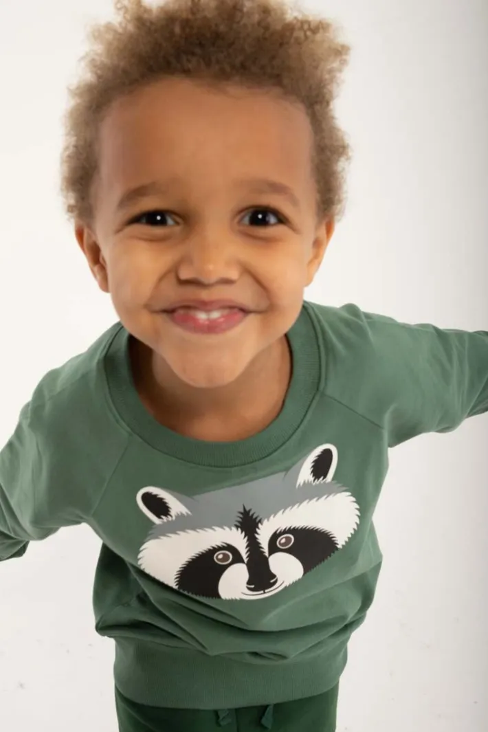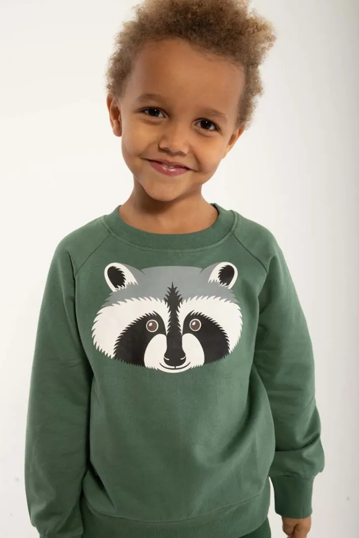 Skøn sweater fra DYR med en fin Vaskebjørn, som sætter gang i fantasien og giver plads til masser af sjov leg.