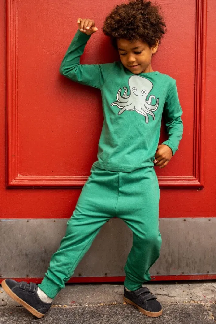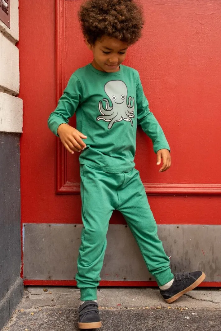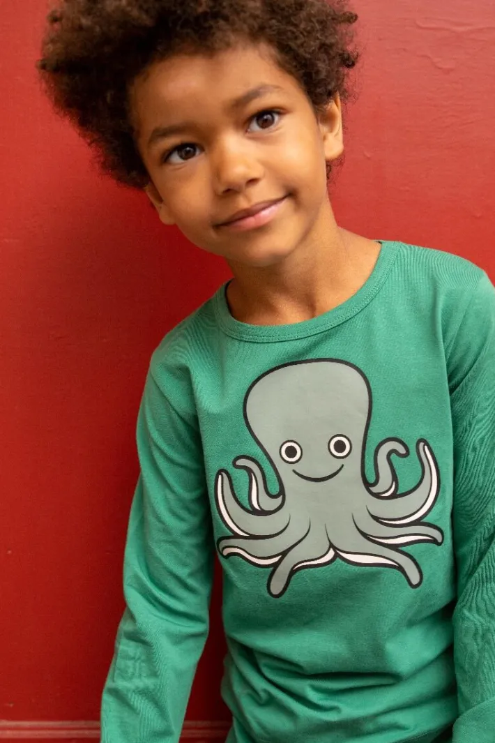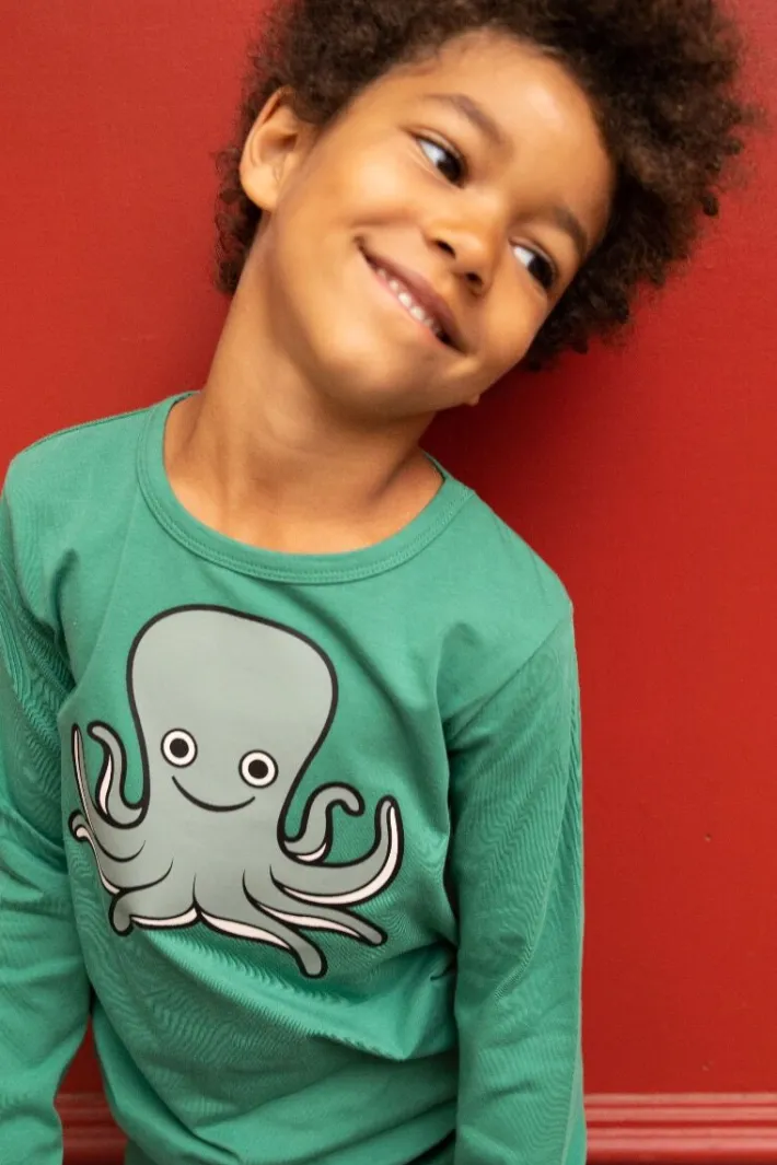 Beautiful blouse from DYR with an octopus, which stimulates the imagination and makes room for lots of fun play. Made of soft materials, so the blouse is nice to wear. The material consists of 95% cotton (180 grams) and 5% elastane. Print, color and shape hold up wash after wash, so that the blouse continues to look delicious even after many washes, and so that the blouse can be passed on and the environment is spared. The entire DYR collection is made from natural materials, primarily cotton, which is eco-tex certified. The print does not contain harmful substances. We continuously test quality, that the clothes do not contain harmful substances, that production takes place with consideration for the environment and that working conditions are good, both by visiting our producers ourselves and by only working with certified producers. Children’s clothing from DYR is popular with animal-loving children, and we promise that a DYR blouse will bring happiness!