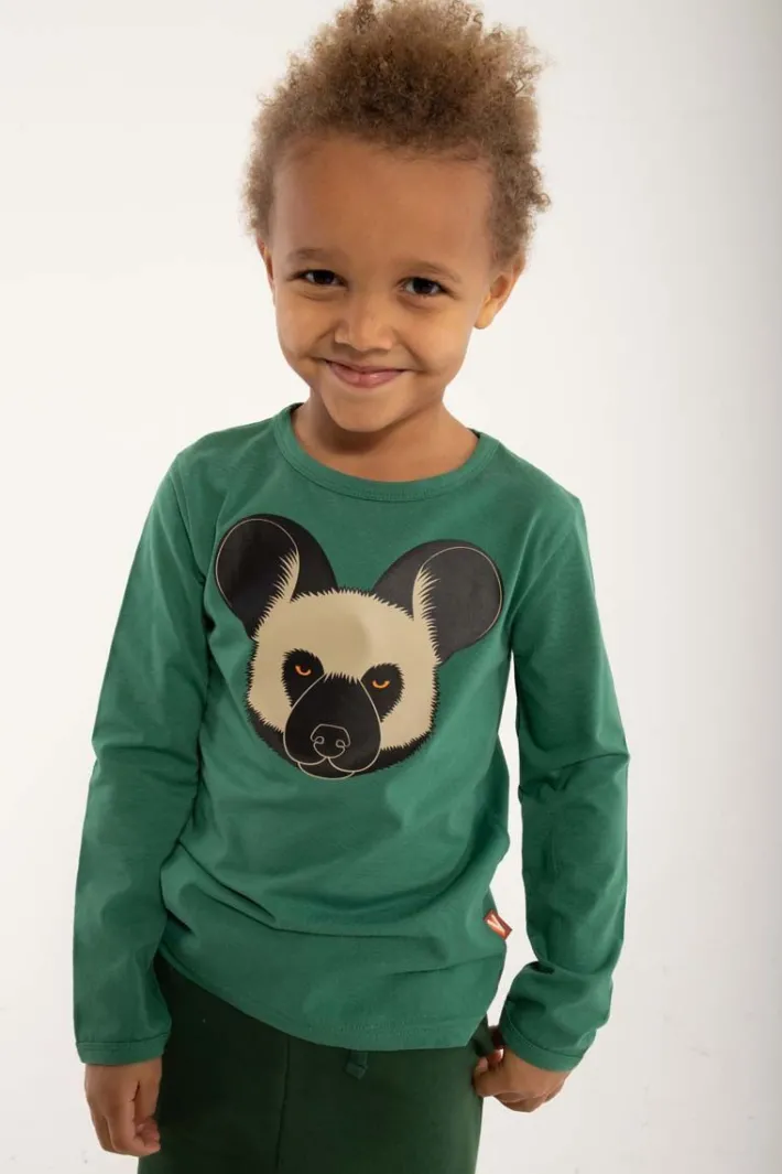 Skøn bluse fra DYR, som sætter gang i fantasien og giver plads til masser af sjov leg. Lavet i bløde materialer, så blusen er dejlig at have på. Materialet består af 95% bomuld (180 gram) og 5 % elastan. Print, farve og form holder vask efter vask, så blusen bliver ved med at se lækker ud også efter mange vaske, og så blusen kan gå i arv og miljøet skånes. Hele DYR kollektionen er lavet i naturlige materialer, primært bomuld, som er øko-tex certificeret. Printet indeholder ikke skadelige stoffer. Vi tester løbende kvalitet, at tøjet ikke indeholder skadelige stoffer, at produktionen foregår under hensyntagen til miljøet og at arbejdsforholdene er gode, både ved selv at besøge vores producenter, og ved kun at arbejde med certificerede producenter. Børnetøj fra DYR er populært hos dyreelskende børn, og vi lover, at en DYR bluse vil bringe lykke!