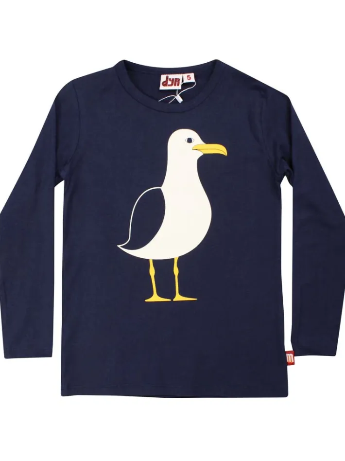 Skøn bluse fra DYR med en sjov måge, som sætter gang i fantasien og giver plads til masser af sjov leg. Lavet i bløde materialer, så blusen er dejlig at have på. Materialet består af 95% bomuld (180 gram) og 5 % elastan. Print, farve og form holder vask efter vask, så blusen bliver ved med at se lækker ud også efter mange vaske, og så blusen kan gå i arv og miljøet skånes.