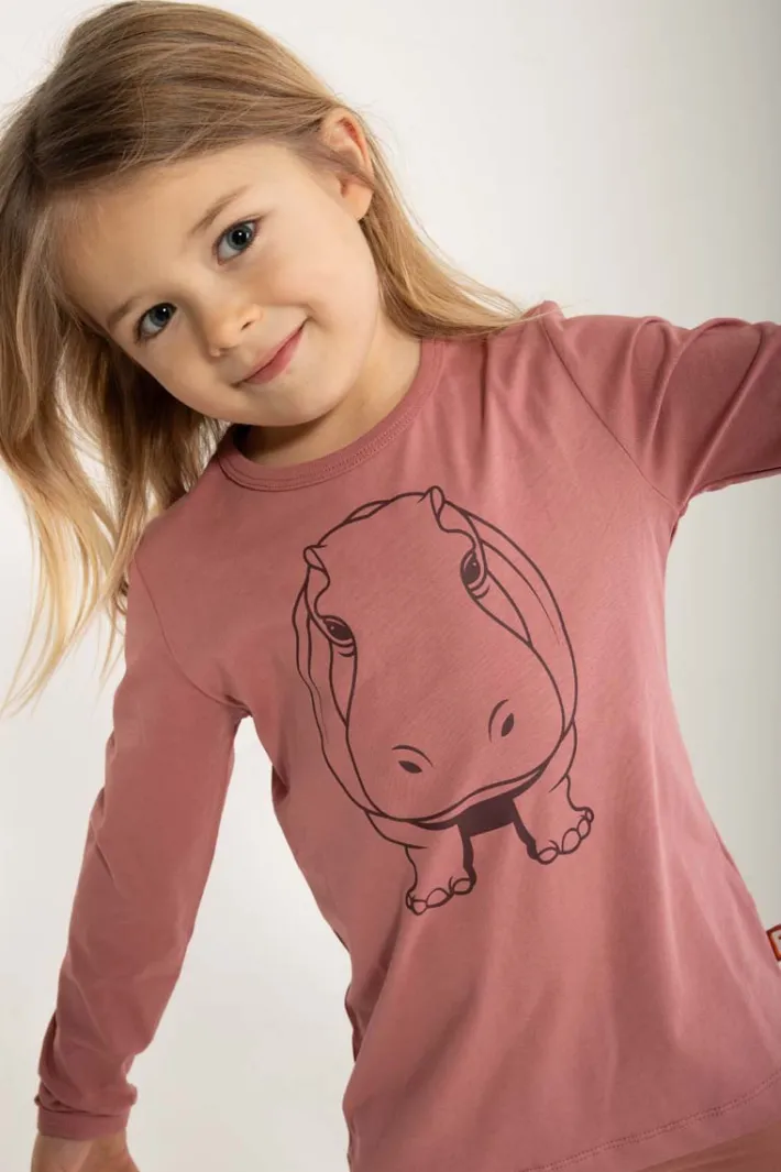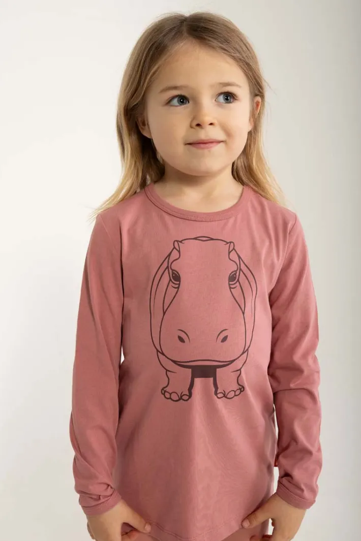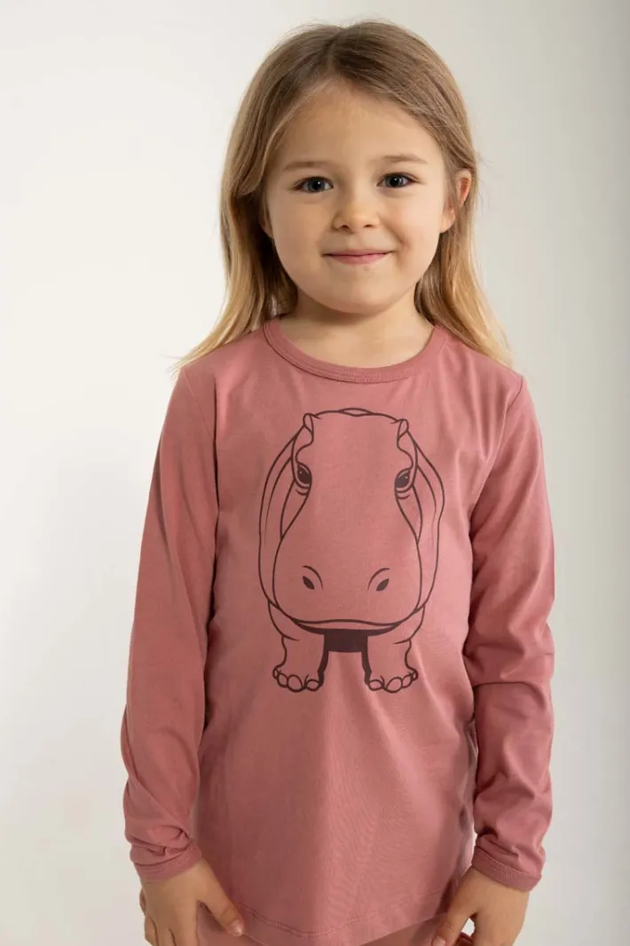 Skønt print med en sød flodhest sætter gang i fantasien og legen.