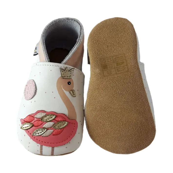 Den skønneste bløde læder, som sidder perfekt på foden. Sålen er af ruskind.