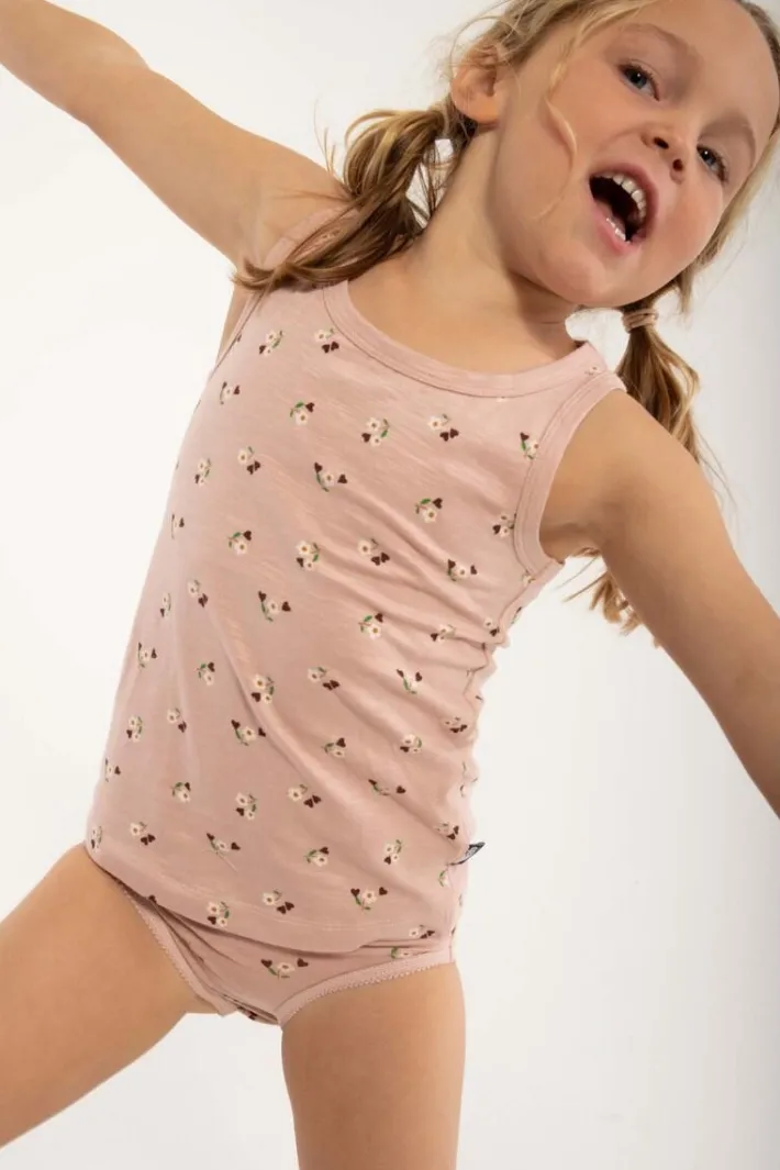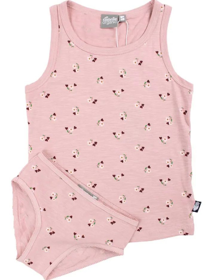 Cute underwear set in gorgeous organic materials. The material consists of 50% cotton, 45% organic viscose and 5% elasthane. The elasthane makes the material stretchable and thereby even more comfortable to wear. The quality is very durable and the set keeps it shape and color even after many times in the washing machine.