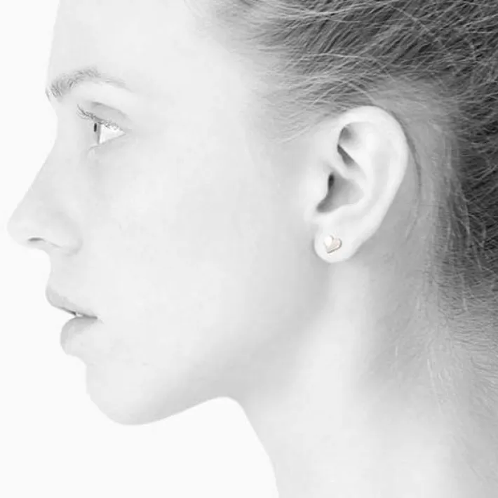 Elegant small heart-shaped earrings in silver from Scherning Copenhagen. The heart has a rough and a shiny half.